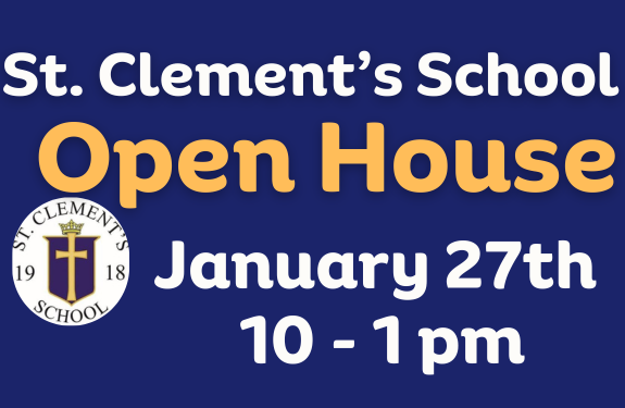 St. Clement’s Catholic Elementary School Open house is Today – Tuesday Jan. 27 from 10 – 1pm! No registration needed – stop in and find out why St. Clement’s School is such a great choice!