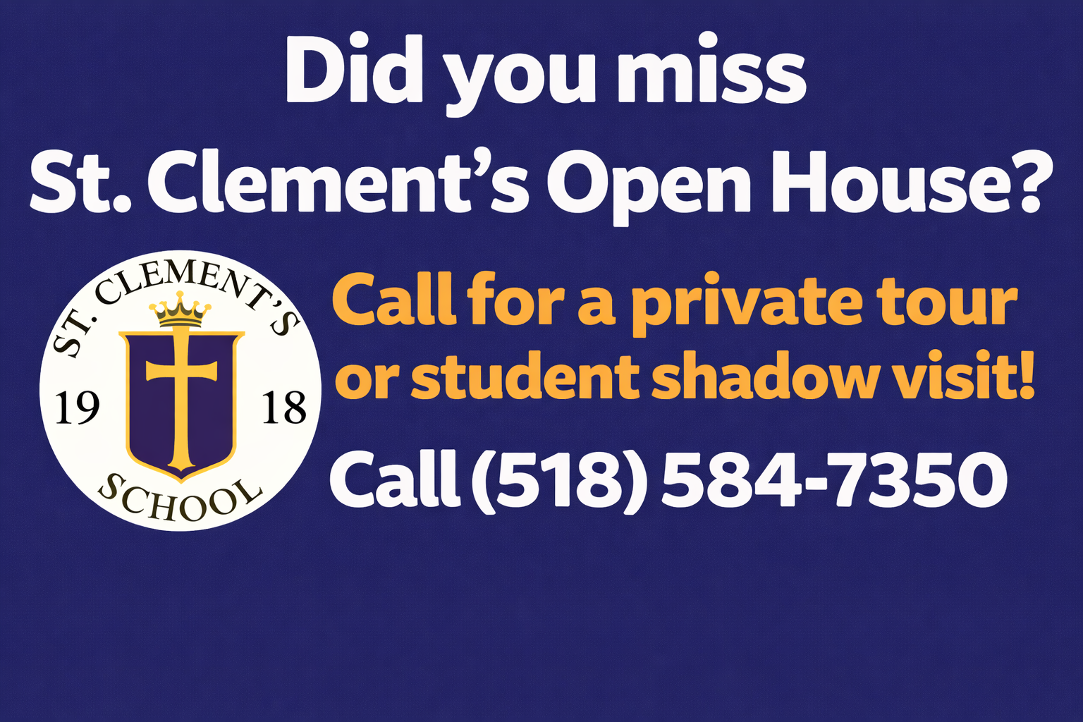 Call St. Clement’s Elementary School for a Private Tour or Shadow Visit – Call 518-584-7350